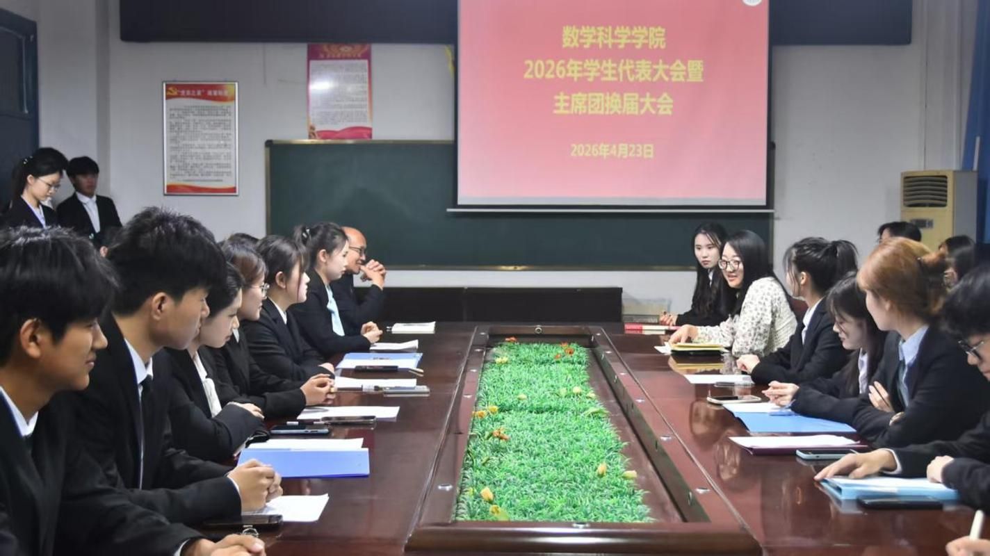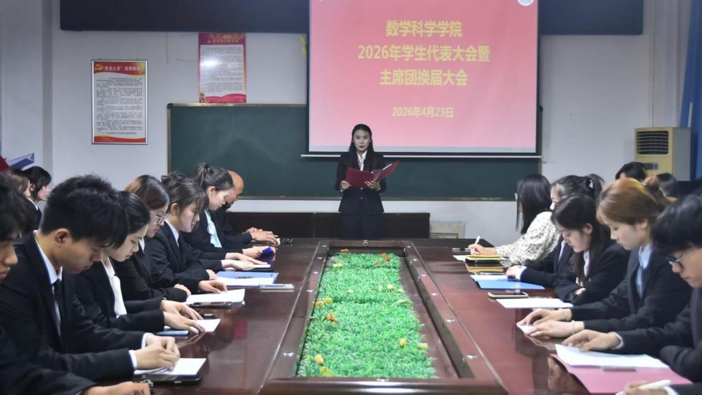 4月23日,WG娱乐(中国)唯一官方网站 于八号楼三楼会议室举办2026年学生代表大会暨主席团换届大会。学院团委书记曲富柱、团委副书记李金璐、辅导员田小霞及全体学生代表共同参会。会议由轮值主席杜怡洁主持。
