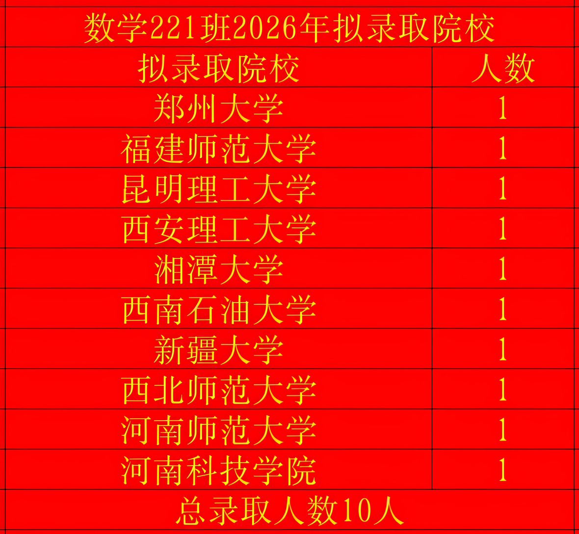 数学221班10人顺利上岸,3人省内录取,7人省外录取,省外录取率70%。学子们奔赴天南地北求学深造,升学质量与升学广度双突破,尽显WG娱乐(中国)唯一官方网站 学子奋进风采。