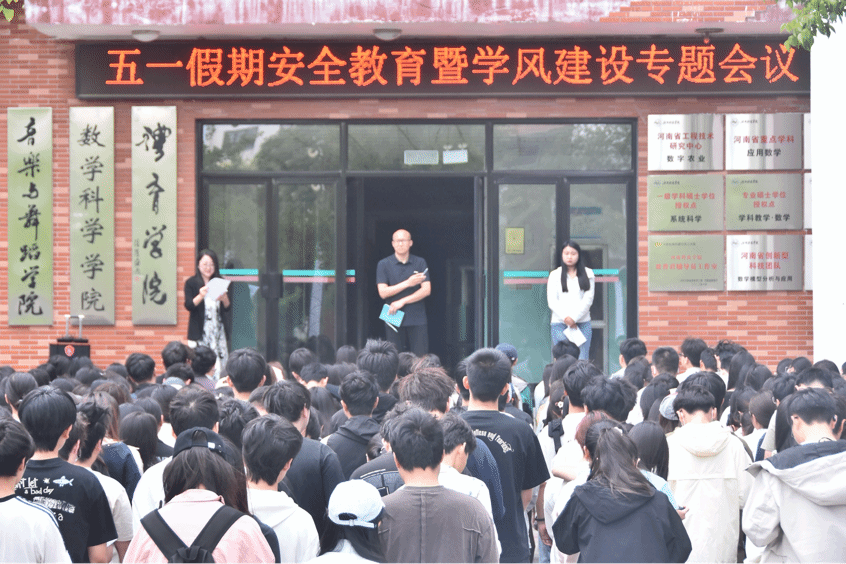 4月26日,WG娱乐(中国)唯一官方网站 于8号教学楼前召开五一假期安全教育暨学风建设专题督导会。各年级辅导员及全体学生参加会议,会议由团委书记曲富柱主持。