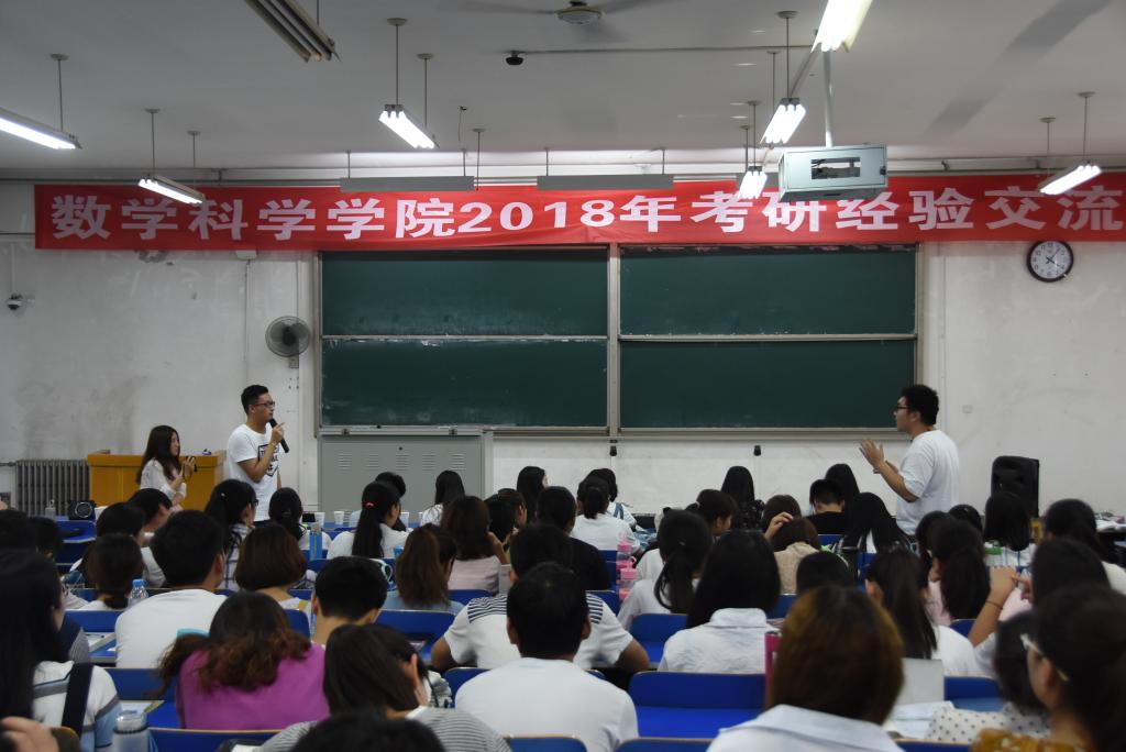 会议开始,考取研究生的学长学姐首先向在座同学们做了简单的自我介绍,然后结合自身经验讲述了学习的小窍门,告诉同学们如何有效的安排学习时间,做好劳逸结合,并且高效率的学习。接着,到了现场提问环节,同学们积极踊跃,争先恐后的提出心中疑问,学长学姐也都一一做出相应的解答。会议最后,贾老师做总结讲话,他鼓励同学们要积极选择考研,为自己的人生做出正确的规划,并对考研成功的学长学姐表示祝贺。
