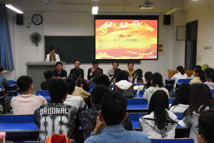 党委书记叶孟韬、党委副书记胡付广、辅导员贾普君、刘喜明、魏伟平及本期共62名入党积极分子出席开班典礼。