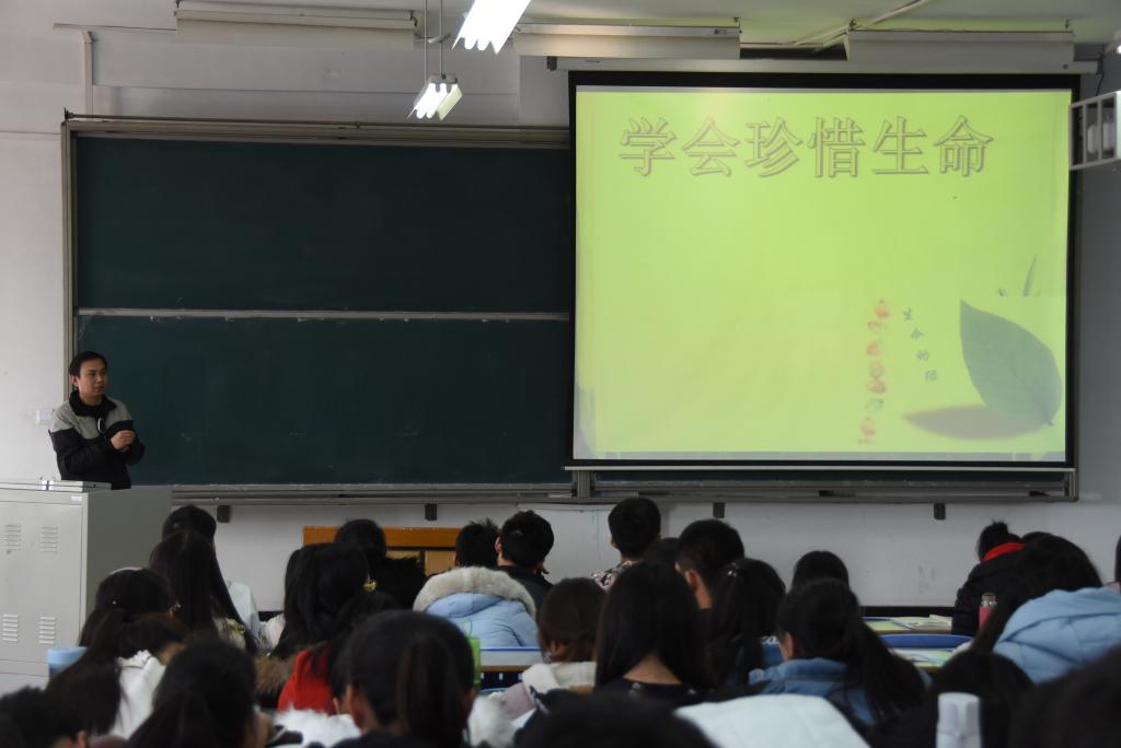 于11合二开展了以“关注安全,珍爱生命”为主题的“三生”教育活动(“三生”教育:“生活、生存、生命”教育)。2017级全体学生参加,活动由辅导员贾普君老师主持并担任主讲人。