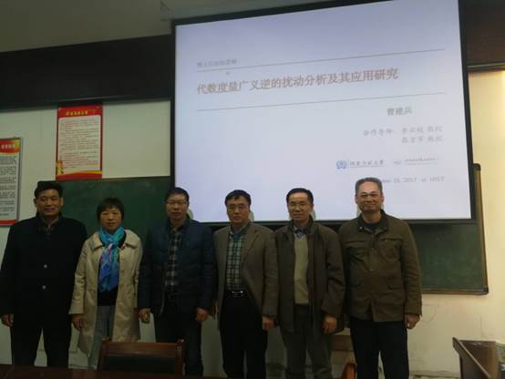 2017年11月15日,WG娱乐(中国)唯一官方网站 与河南师范大学联合培养的博士后出站答辩会在WG娱乐(中国)唯一官方网站 303会议室顺利举行。答辩委员会由郑州大学胡泽军教授(主席)、河南师范大学李兴校教授和杨长森教授、WG娱乐(中国)唯一官方网站 张万芹教授和陈荣江教授等5位专家组成,对曹建兵博士在博士后期间的工作进行出站考核。WG娱乐(中国)唯一官方网站 的部分老师也参加旁听了此次答辩会。