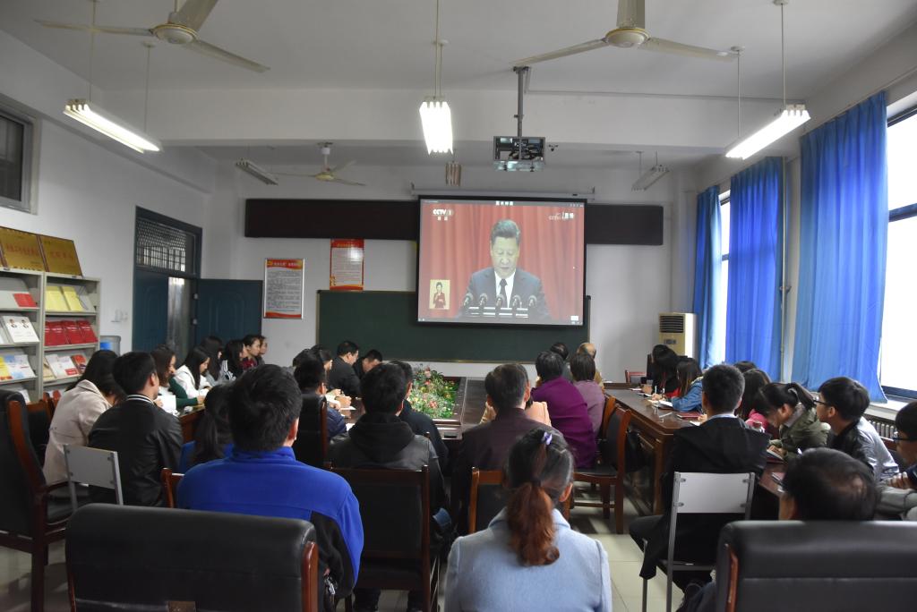 认真组织广大师生开展 “十九大”观看学习活动。从学院领导到普通学生均积极主动关注十九大盛况,通过集中观看现场直播的方式认真聆听学习习近平总书记代表十八届中央委员会向大会所作的工作报告。