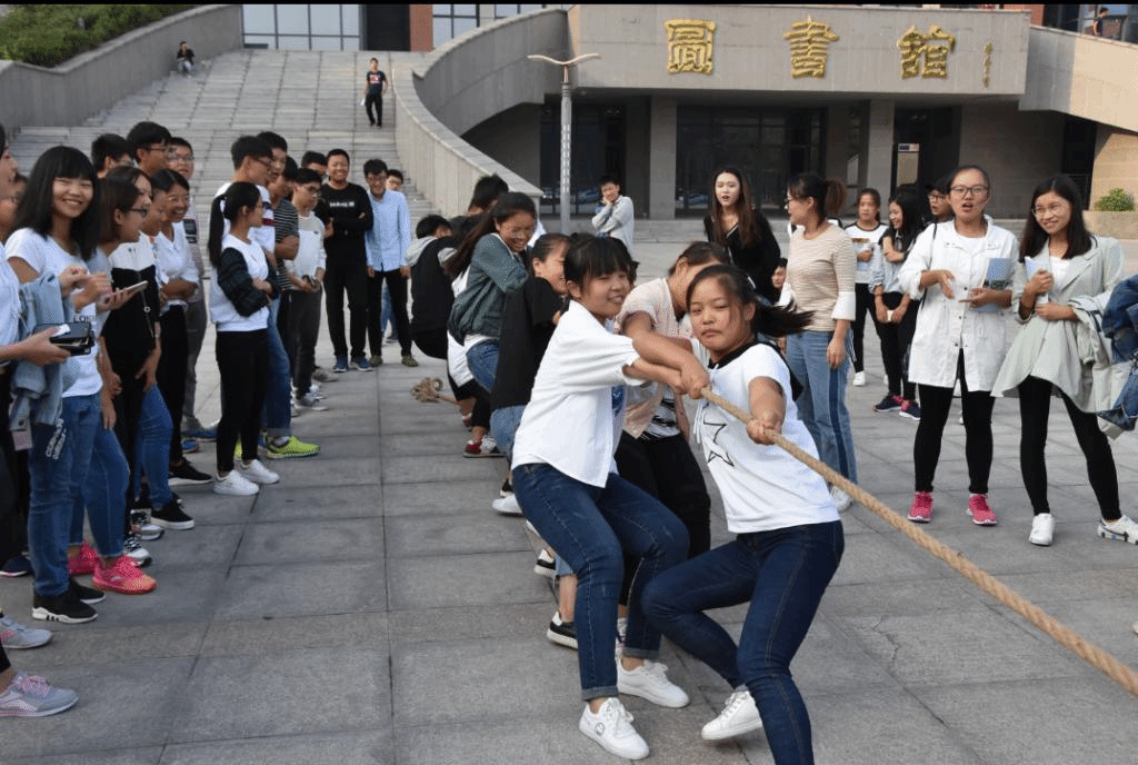 在启智广场举行了拔河比赛,全体大一新生参加了此次比赛。