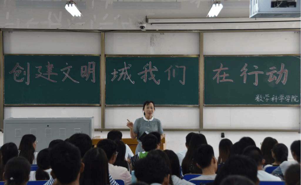 会议伊始,付老师讲述了我市的文明城市创建史,付老师说道,我市从2002年开始创建文明城市,直到近二年才有了重大突破,尤其是今年,对文明城市创建评比极为重要,而高校作为必检单位,更应该建设好文明;然后,付老师给大家说道应如何创建文明城市,将垃圾放进垃圾箱,别人问路时耐心细致的指引,看到路旁车子倒了及时扶起并摆放整齐,在校园里要文明用语,遵守规则……