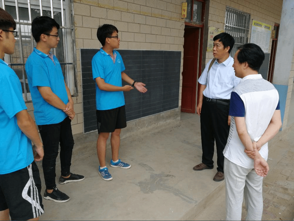 学院考虑到天气炎热,生活不便等情况,给支教志愿者们带来了水果和生活物品等。前大柳村小学校长刘先智热情接待并详细介绍了学校的基本情况。