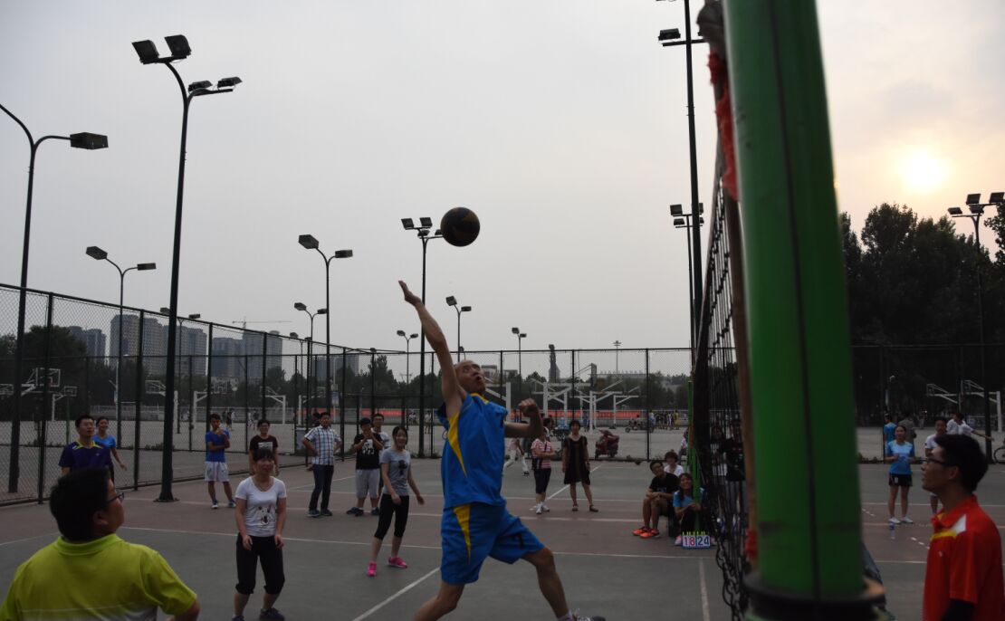 赛场上,教师队和学生队本着“友谊第一、比赛第二”的原则,在球场上互相尊重,互相学习。每一局比赛,大家都纷纷拿出自己的绝招:稳健的发球、到位的一传、精准的二传、大力的扣球。每个环节都尽力发挥,每个技术动作都有模有样。比赛在一片欢声笑语的融洽氛围中激烈的进行着。比赛输赢并不重要,重要的是在比赛中展现了毕业生对母校深深眷恋和老师们对毕业生的依依不舍。