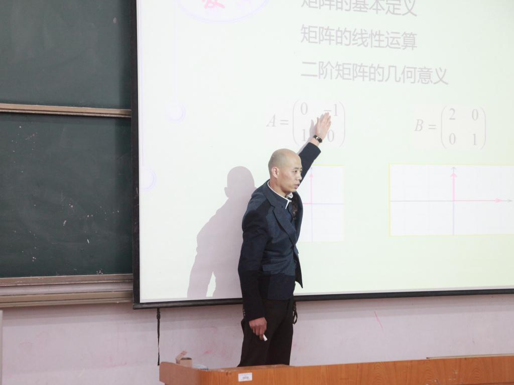 9日上午10点,马宝林老师为该校数学专业师生近200人做了关于课堂教学艺术的观摩课,展示的“矩阵的乘积”以及“逆矩阵”两节趣味课堂授课技巧。授课过程中,马宝林副教授诙谐幽默,风格独特,理念新颖,不仅让师生们开阔了眼界,打破惯例思维,使课堂“活”起来,也让教师在以后的备课和教学过程中,认真研究课堂的设计与创意,使授课达到最好的教学效果。