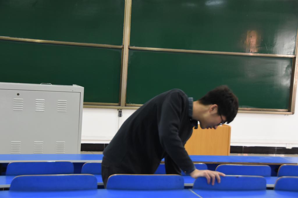 志愿者们有序迅速的排查了0号-11号教学楼的所有教室,查看桌子凳子有无螺丝松动,损坏情况,窗帘是否整洁完好。志愿服务活动进行时,志愿者们非常的积极,一丝不苟,认真检查,并且做好损坏情况的记录工作。志愿者们各司其职,累并快乐着,在浓浓的书卷香中传递着他们的服务精神。