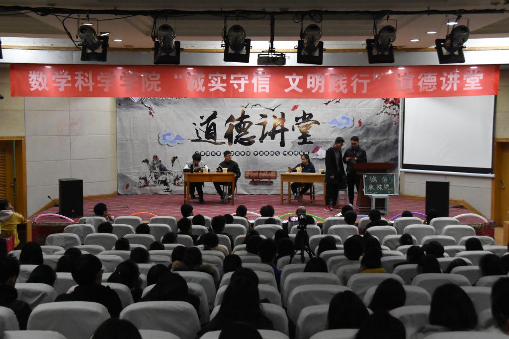 本期道德讲堂以“诚实守信,文明践行”为主题,分为载舞诚信、学习模范、歌颂诚信、发出倡议四个环节。活动中,在场师生认真思考了自己是否做到言必行、行必果,对自己是否有不守承诺的行为进行深刻反省;大家共同聆听诚信故事,观赏诚信小品,唱诚信歌曲,从而进一步对诚信守诺有了更加深刻的认识;同学们还纷纷讲述了自己身边的诚信故事,发人深省。最后,本期道德讲堂向全体师生发出倡议,希望大家在今后能够以诚立身,以信为本,让诚信之花持续绽放。