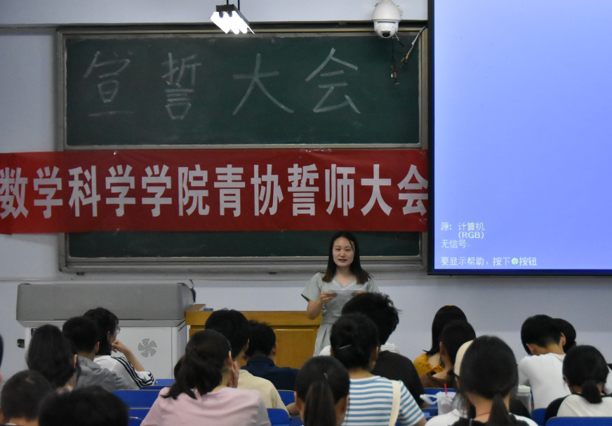 青年志愿者协会誓师大会在三合二举行,青年志愿者协会的会长、院学生会主席团部分成员以及青协成员参加此次大会。