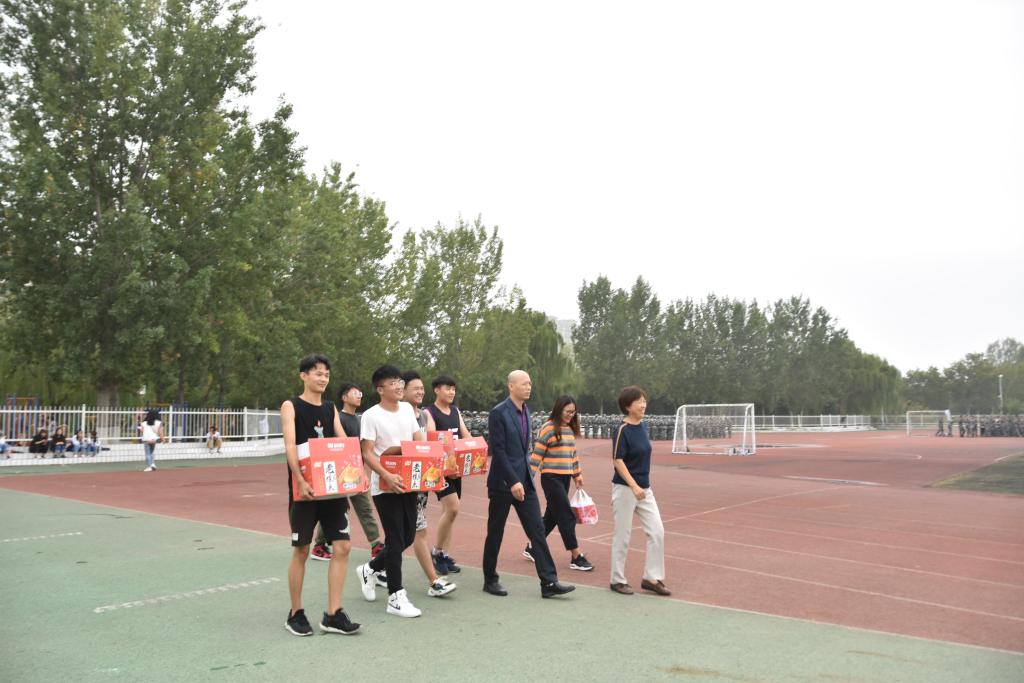 首先,张万芹院长向承训教官表达了真诚的感谢,感谢教官们在军训工作中不辞辛苦,认真负责。同时也希望各位教官能够继续对新生严格要求、严肃管理,配合学院做好学生军训教育工作。随后,张万芹院向新生强调了步入大学军训是门必修课,通过军训磨练艰苦奋斗的意志,培养吃苦耐劳的精神,可以帮助大家为尽快适应大学生活而打下坚实的基础。最后,张万芹、马宝林、贾普君三位老师共同为军训教官和新生们送上中秋月饼,希望大家能够携手共进,圆满完成此次军训任务。