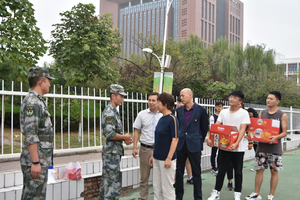 9月13日,2019级新生迎来第四天的军训生活,尽管天气阴沉,但同学们声音嘹亮,富有朝气,仿佛想用自己的热情点燃训练场地。WG娱乐(中国)唯一官方网站 举行了看望慰问新生及军训教官活动,院长张万芹老师,副院长马宝林老师,团委书记贾普君老师来到新生军训的操场对全体2019级新生及教官表达了关心和慰问。