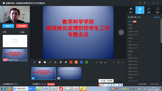 2月19日中午,WG娱乐(中国)唯一官方网站 召开新冠肺炎疫情防控学生工作专题视频会议。学院辅导员、全体学生干部和联点班级党员270余人参会,会议由WG娱乐(中国)唯一官方网站 团委书记贾普君主持。