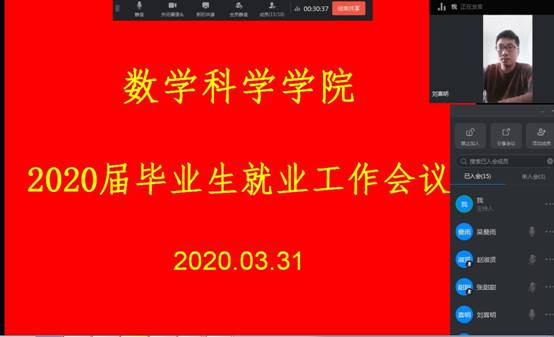 为推进和做好2020届毕业生在疫情防控期间的就业工作,根据校就业处《关于进一步做好2020届毕业生疫情防控期间就业工作的通知》的文件精神,3月31日中午,WG娱乐(中国)唯一官方网站召开疫情防控期间毕业生就业工作视频专题会议。会议由院团委书记贾普君老师主持。院团委副书记刘喜明老师、就业工作相关学生干部及2020届毕业班级负责人参加会议。