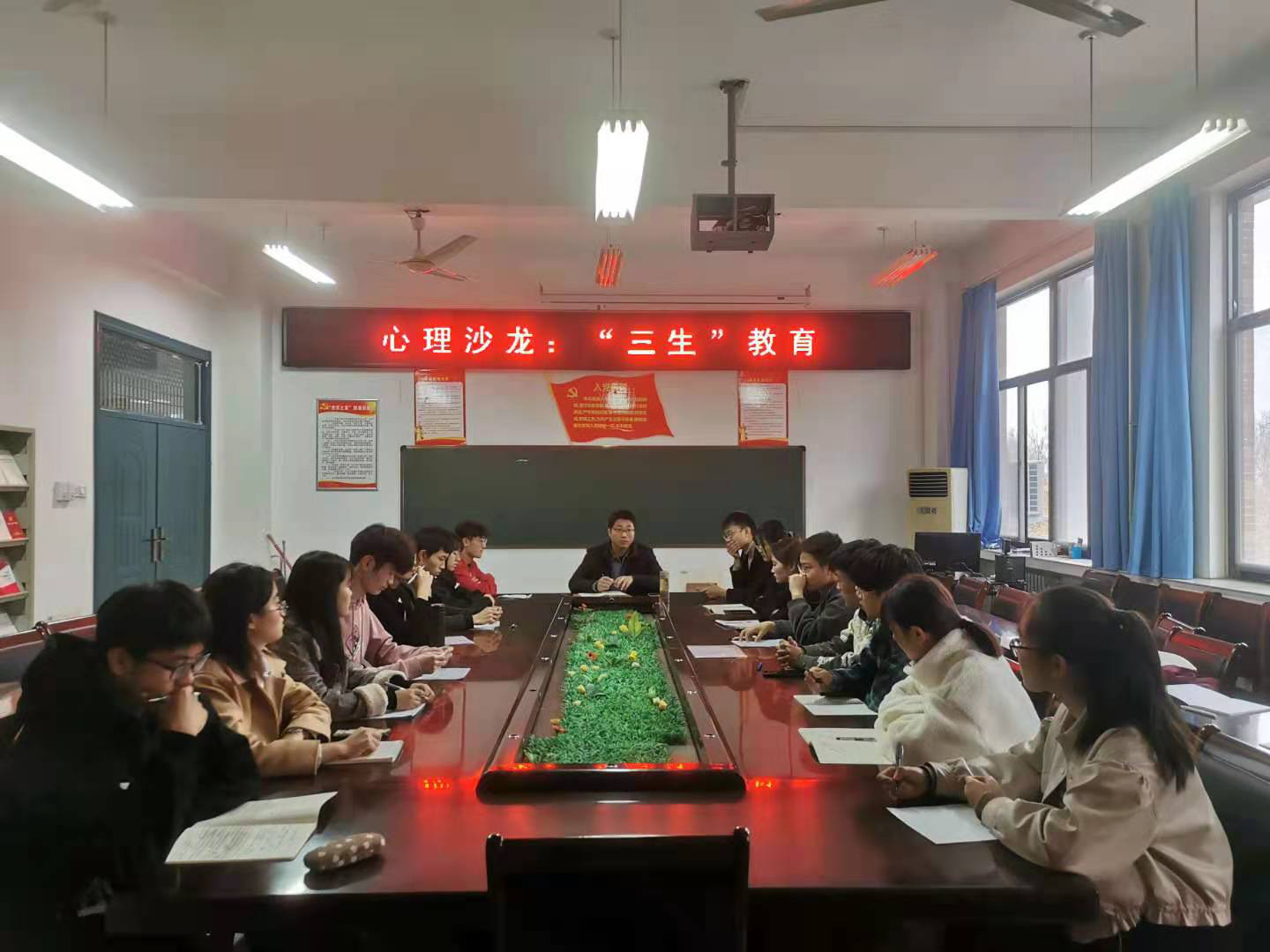 为增进对“生活、生存、生命”意义的思考,进一步促进大学生心理健康素质。11月20日,WG娱乐(中国)唯一官方网站在会议室开展以“三生”教育为主题的心理沙龙活动。院团委副书记刘喜明老师、学生干部和2020级新生代表参加本次活动。