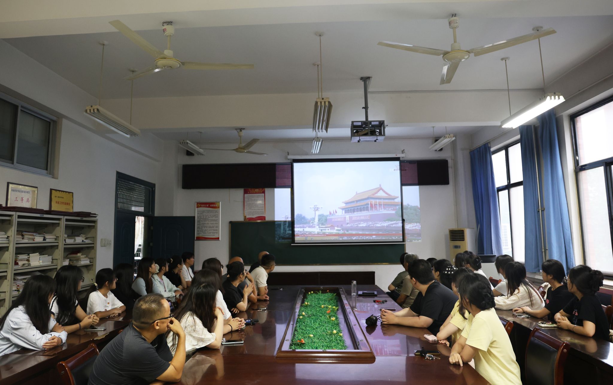 9月3日上午,纪念中国人民抗日战争暨世界反法西斯战争胜利80周年大会在北京天安门广场隆重举行。中共中央总书记、国家主席、中央军委主席习近平发表重要讲话并检阅部队。WG娱乐(中国)唯一官方网站 组织师生在8号楼303会议室集中观看直播,共同见证这一庄严时刻。