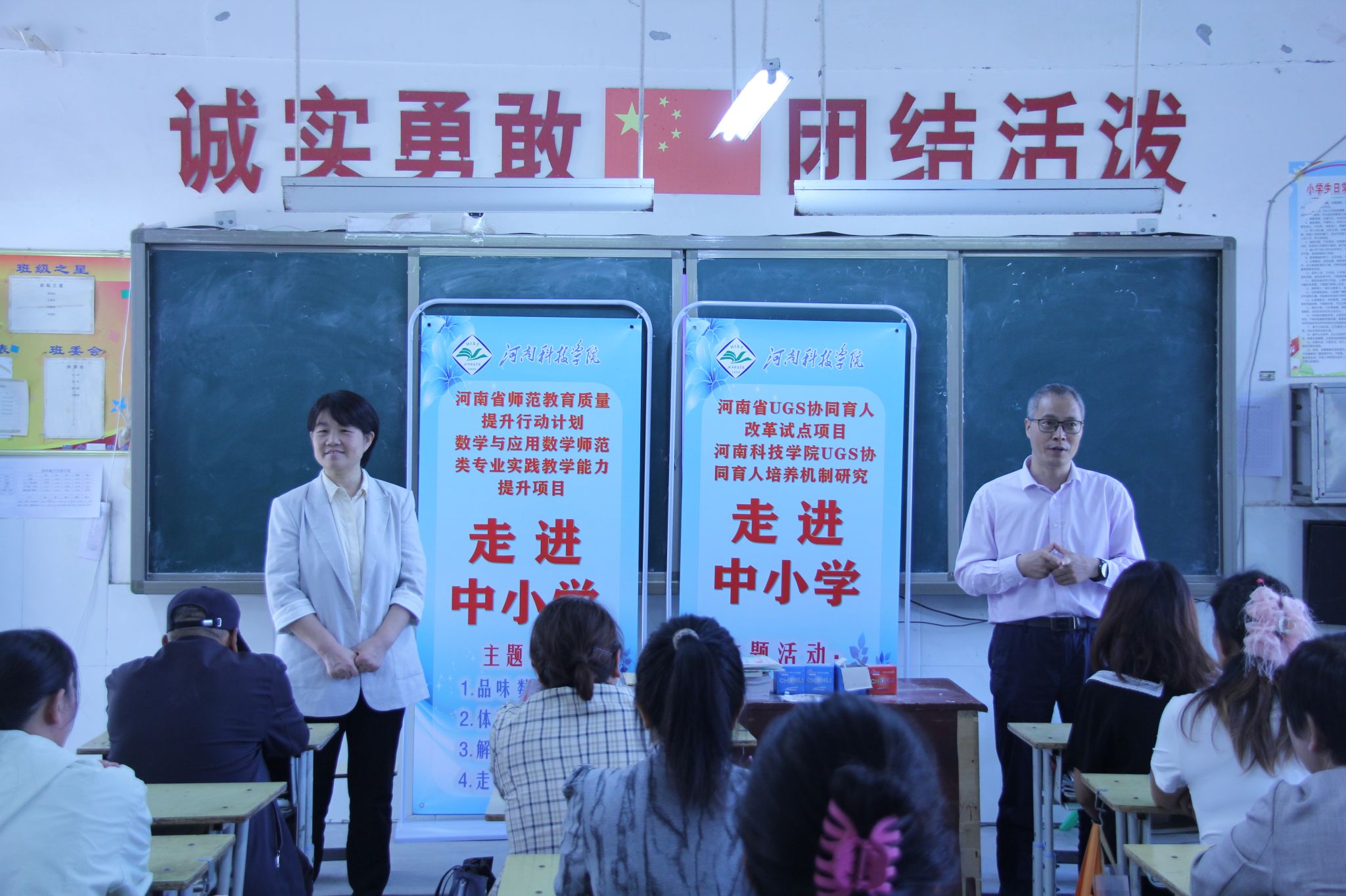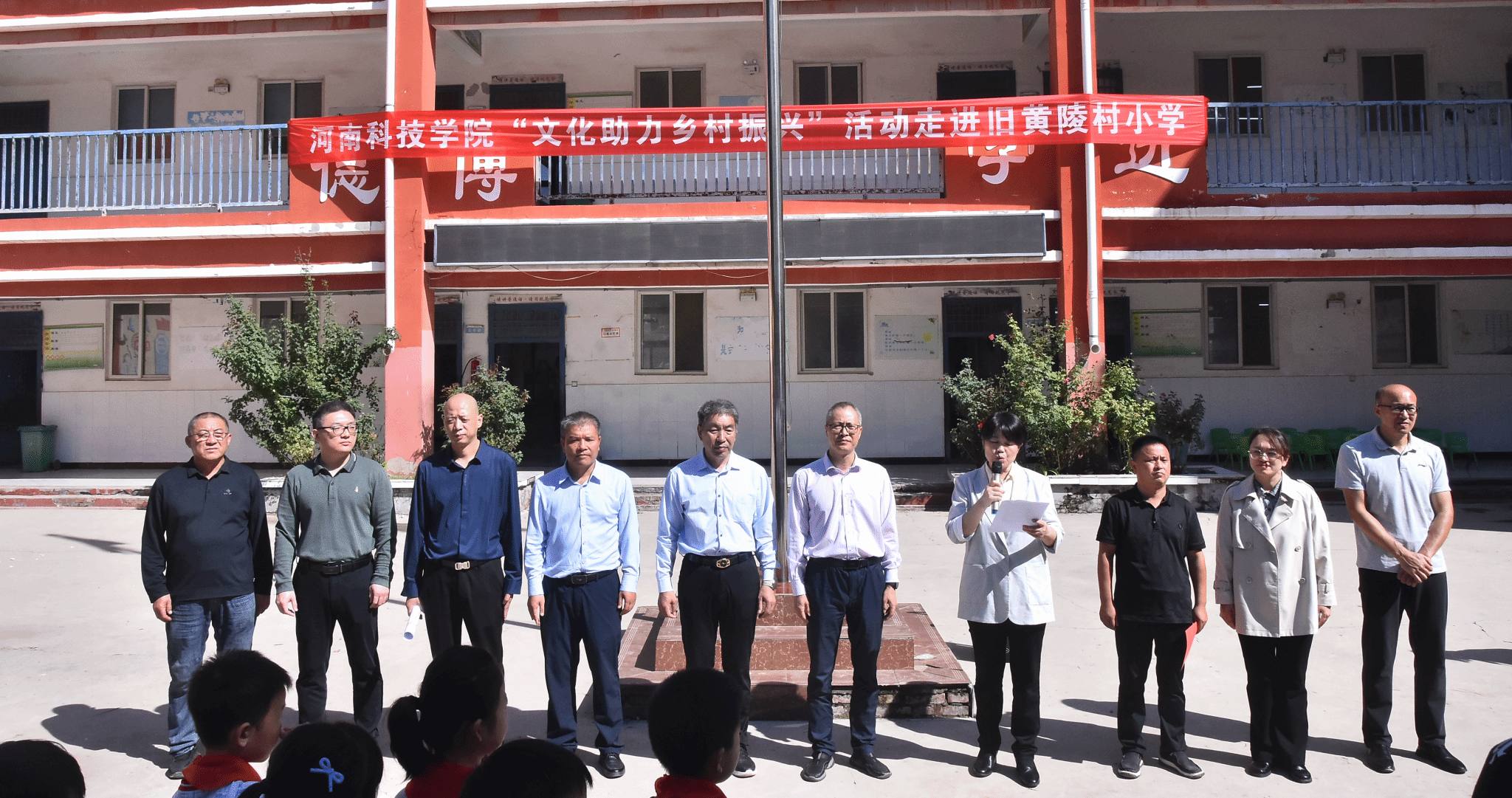 9月25日,WG娱乐(中国)唯一官方网站 领导班子带领数学文化团队成员前往封丘县黄陵镇旧黄陵村小学开展WG娱乐(中国)唯一官方网站 “文化助力乡村振兴”数学文化进校园系列活动。教务处处长杨宾峰、驻村第一书记陈利、WG娱乐(中国)唯一官方网站 党委书记李军民、院长董瑞、党委副书记马宝林、旧黄陵村小学负责人等出席。活动由陈利主持。