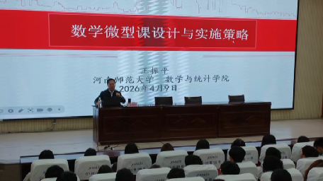 河南师范大学数学与统计学院(密码学院)硕士生导师、数学教育中心主任,北京师范大学博士,中国数学会数学教育分会理事王振平副教授进行师范月第一讲,主题为“数学微型课设计与实施策略”。
